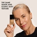 Image 2 - The image displays two Giorgio Armani Luminous Silk foundation bottles side-by-side on a light background, comparing a lighter Before shade to a slightly darker After shade; the left bottle reads luminous silk perfect glow flawless foundation fond de teint éclat parfait GIORGIO ARMANI, the right bottle reads luminous silk perfect natural glow foundation fond de teint naturel parfait ARMANI, and a central list highlights features THE SAME ICONIC SILKY TEXTURE LUMINOUS SILK FOUNDATION, NEWLY ENHANCED 24H WEAR & NATURAL GLOW* NOW WITH EVEN BETTER COLOR MATCH RE-FORMULATED WITH NIACINAMIDE AND NEW FLORAL EXTRACTS, with *INSTRUMENTAL TEST ON 106 VOLUNTEERS at the bottom. Image 3 - A woman with brown hair holds a bottle of Armani Luminous Silk foundation next to her face, with text on the image reading THE SAME SHADE AND ICONIC SILKY TEXTURE. Image 5 - A split image shows a womans face before and after applying a cosmetic, with the left side showing her natural skin and the right side showing a smoother, more even skin tone, with text BEFORE on the bottom left and AFTER SHADE 6 on the bottom right. Image 6 - A bottle of Armani Luminous Silk foundation with a black cap and silver logo is shown on a tan background with foundation streaks and clear liquid drops, displaying the text Luminous Silk perfect natural glow foundation fond de teint éclat naturel parfait Armani, Now formulated with Niacinamide and new floral extracts, 94% of consumers agree their skin appears less dull*, and *Instrumental test on 106 volunteers. Image 7 - Five swatches of liquid foundation in shades ranging from dark brown to light beige are displayed on a light background, with text that reads NOW IN 44 TRUER-TO-SKIN SHADES WITH A SKIN LIKE FINISH THAT BLURS PORES AND PROVIDES 24 HOUR WEAR AND NATURAL GLOW* *INSTRUMENTAL TEST ON 106 VOLUNTEERS. Image 8 - Four bottles of Giorgio Armani Luminous Silk foundation are displayed in a gradient of shades from light to dark on a reflective surface, with the visible text AVAILABLE IN 44 LUMINOUS SHADES and on each bottle LUMINOUS SILK perfect natural glow foundation fond de teint éclat naturel parfait ARMANI. Image 9 - A three-step guide to finding foundation shade visually showing eight different models demonstrating skin tones from fair to very deep, followed by explanations for identifying cool, neutral, and warm undertones, and a comprehensive table listing Luminous Silk Foundation shade numbers based on undertone and skin tone categories, with visible text reading Find your perfect shade STEP 1/ FIND YOUR SKINTONE FAIR LIGHT LIGHT MEDIUM MEDIUM MEDIUM TAN TAN DEEP VERY DEEP STEP 2/ FIND YOUR UNDERTONE COOL BLUE VEINS NEUTRAL BLUE & GREEN VEINS WARM GREEN VEINS STEP 3/ FIND YOUR LUMINOUS SILK FOUNDATION SHADE UNDERTONE FAIR LIGHT LIGHT MEDIUM MEDIUM MEDIUM TAN TAN DEEP VERY DEEP COOL 1, 3.75 5.1 5.25, 5.5 7 8.25 12.1 15.5 NEUTRAL 2 3.5, 4, 4.5, 5 5.15, 5.3, 5.75 5.9, 5.95, 6, 6.5 7.6 8.6, 9 11, 11.75, 13.25 13.6, 15.8 WARM 3 3.8, 4.1 5.2 5.8, 6.25 6.8, 7.8, 8.1 9.1, 10.1 11.4, 11.8 13.8, 14.Image 9 - A Luminous Silk Foundation shade guide shows rows comparing old and new foundation shades, with bottles on the left under IF YOU WORE SHADE, labeled FAIR TO MEDIUM, pointing with arrows to models wearing new foundation shades and swatches on the right under YOUR NEW MATCH - Enhanced formula, with the visible text Some shades have changed. Discover your new match, Shade 1.5, Shade 4.25, Shade 4.75, Shade 7.5, Shade 7.75, Shade 8, Shade 2 Neutral golden, OR Shade 4 Neutral golden, Shade 4.1 Warm golden NEW, OR Shade 4.5 Cool peach, Shade 5 Neutral pink, OR Shade 5.1 Cool pink, Shade 7.6 Neutral golden NEW, OR Shade 5.8 Warm golden, Shade 5.95 Neutral peach NEW, OR Shade 7.8 Warm olive, Shade 7.8 Warm olive NEW, OR Shade 7.6 Neutral golden NEW Image 10 - A Luminous Silk Foundation shade matching chart titled Some shades have changed. Discover your new match, visually presents original shades in a column labeled IF YOU WORE SHADE TAN TO DEEP with corresponding new enhanced formula matches under YOUR NEW MATCH, showing models with swatches: If you wore Shade 8.5, your new match is Shade 9.1 Neutral olive NEW; if you wore Shade 8.75, your new match is Shade 8.6 Neutral golden NEW; if you wore Shade 10, your new match is Shade 11.4 Warm golden NEW or Shade 9 Neutral olive NEW; if you wore Shade 11.5, your new match is Shade 11.8 Warm peach NEW or Shade 11.8 Warm peach NEW; if you wore Shade 12, your new match is Shade 12.1 Cool pink NEW or Shade 12.1 Cool pink NEW; if you wore Shade 13, your new match is Shade 11.75 Neutral pink NEW; if you wore Shade 13.5, your new match is Shade 13.8 Warm olive NEW; and if you wore Shade 15, your new match is Shade 15.5 Cool red NEW.