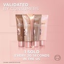 Image 3 - A smiling woman with long, wavy dark hair shows off her glowing skin beside four tubes of LOréal Lumi Glotion multi-use glow enhancer, with the text LUMI GLOTION MULTI-USE GLOW ENHANCER BECAUSE YOURE WORTH IT.