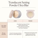 Image 1, before, after translucent loose setting powder ultra blur, after 10 hours. image 2, talc free, blurs texture fine lines and imperfections, sets makeup for 16 hours, ultra finely milled powder for a weightless finish. image 3, choose your setting powder, 16 hour wear and weightless finish. setting icon original: usage = all over setting and baking, finish = matte, best for = normal to oily skin. ultra blurring: usage = all over setting and targeted blurring, finish = natural, best for = normal to dry skin. colour correcting: usage = all over setting and targeted brightening, finish - matte, best for = normal to oily skin. under eye brightening: usage = sets, concealers and brightens under eyes, finish = matte, best for = normal to oily skin. image 4, translucent setting powder ultra blur. loose and pressed benefits = ultra blurring, natural finish, 16 hour hydrating wear, great for normal to dry skin, no photo flashback. loose bonus benefits = great for everyday setting, great for home application. pressed bonus benefits = waterproof and sweat proof, great for on the go application and touch ups. image 5, 100% said it is the key to long lasting makeup 99% said it feels comfortable. 97% said it controls the look of shine.