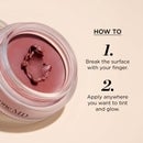 - Application: Break the surface of the balm with your finger before applying. Apply with fingertips, sponge or brush anywhere you want to tint or glow. Use alone or on top of foundation to instantly revive skin.