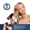 Designed to protect delicate strands against heat damage, the hair dryer utilises innovative high-velocity airflow to minimise the risk of breakage. Shark’s scalp shield mode instantly reduces air temperatures to the optimum level for scalp comfort and root drying.